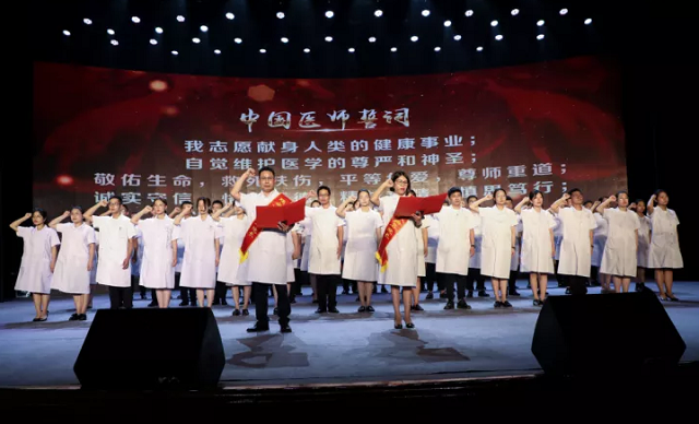 各醫(yī)療單位年輕醫(yī)生在第五輪“名院長(zhǎng)”的帶領(lǐng)下重溫醫(yī)師誓詞,激勵(lì)廣大醫(yī)務(wù)工作者堅(jiān)定理想信念,當(dāng)好守護(hù)人民健康的忠誠(chéng)衛(wèi)士。