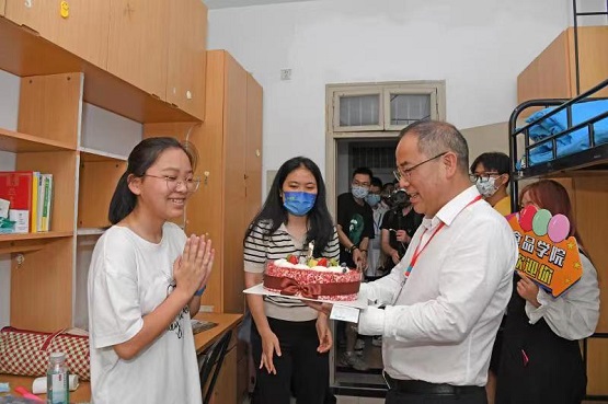 “大學(xué)報(bào)到第一天,剛好趕上自己過(guò)生日,第一次離開父母過(guò)生日還真不習(xí)慣,也不知道該準(zhǔn)備什么。光顧著準(zhǔn)備開學(xué)的東西,都忘了生日可以吃蛋糕。”食品與生物工程學(xué)院新生明靜來(lái)自海寧,收到蛋糕的時(shí)候非常激動(dòng),“學(xué)校居然記得我的生日,書記還給我題字,開啟我大學(xué)生活的序幕,這太讓我驚喜了!”