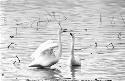 初冬時節(jié),大批天鵝陸續(xù)南遷來到河南省三門峽市黃河濕地棲息越冬。近年來,當(dāng)?shù)卮罅ν七M黃河濕地生態(tài)建設(shè),加強天鵝保護力度,來這里越冬的天鵝數(shù)量逐年增多。