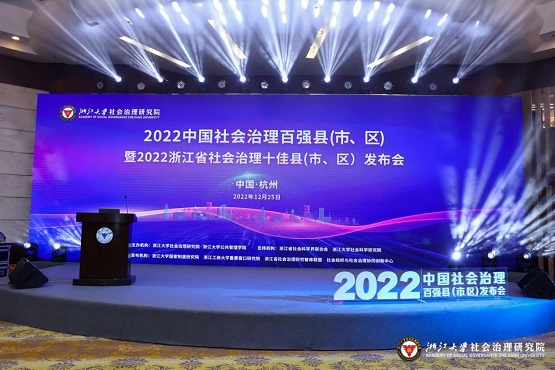 2022年12月25日,浙江大學(xué)社會(huì)治理研究院舉行“2022中國(guó)社會(huì)治理百?gòu)?qiáng)縣(市、區(qū))暨2022浙江省社會(huì)治理十佳縣(市、區(qū))”發(fā)布會(huì)。
