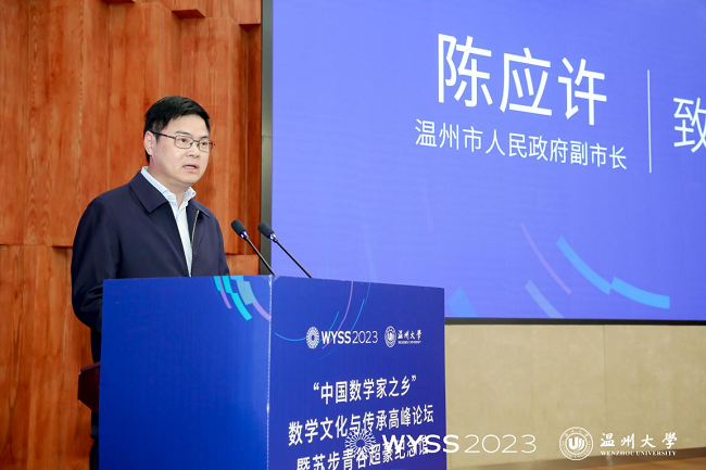 溫州市人民政府副市長陳應(yīng)許表示,溫州素有“東南小鄒魯”之稱,也是中國數(shù)學(xué)家的搖籃,被譽為“數(shù)學(xué)家之鄉(xiāng)”。新時代,溫州擦亮“數(shù)學(xué)家之鄉(xiāng)”金字招牌是綿綿用力,久久為功,例如,打造了世界青年科學(xué)家峰會、中國數(shù)學(xué)教育研討會、溫籍?dāng)?shù)學(xué)家研究中心、溫籍?dāng)?shù)學(xué)家長廊等多種平臺,出臺了《溫州數(shù)學(xué)家家園建設(shè)方案》,充分發(fā)揮溫籍?dāng)?shù)學(xué)家資源豐富的獨特優(yōu)勢,加速引育一批國內(nèi)外數(shù)學(xué)家等等。他在致辭中提出三點建議意見:一是匯聚最強大腦,助力溫州加強數(shù)學(xué)基礎(chǔ)研究;二是匯聚最強資源,助力溫州加強數(shù)學(xué)人才的培養(yǎng);三是匯聚最優(yōu)人才,助力溫州建設(shè)人才創(chuàng)新高地,希望得到院士、專家的幫助和支持,共同擦亮溫州“數(shù)學(xué)家之鄉(xiāng)”城市金名片。