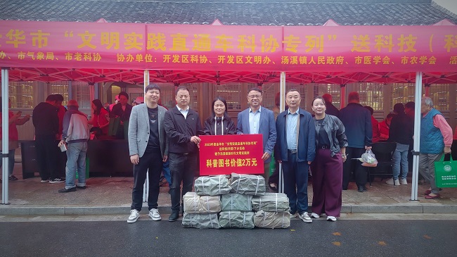 10月20日上午,金華市科協(xié)聯(lián)合市文明辦、市氣象局、市老科協(xié)、市醫(yī)學(xué)會、市農(nóng)學(xué)會和金華開發(fā)區(qū)文明辦、科協(xié)等單位一行40余人來到金華開發(fā)區(qū)湯溪鎮(zhèn)新時代文明實踐所,開展“文明實踐直通車科協(xié)專列”送科技(科普)下鄉(xiāng)活動。