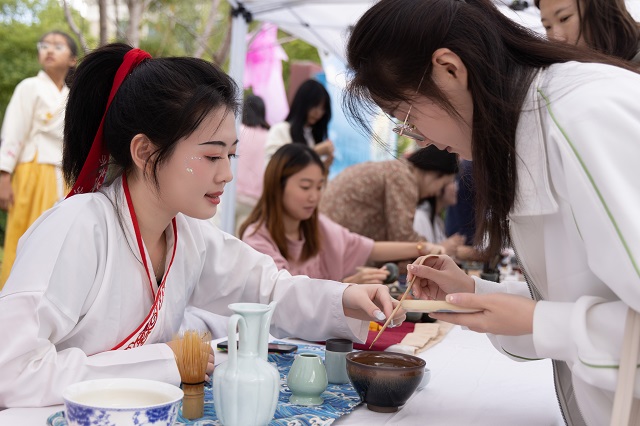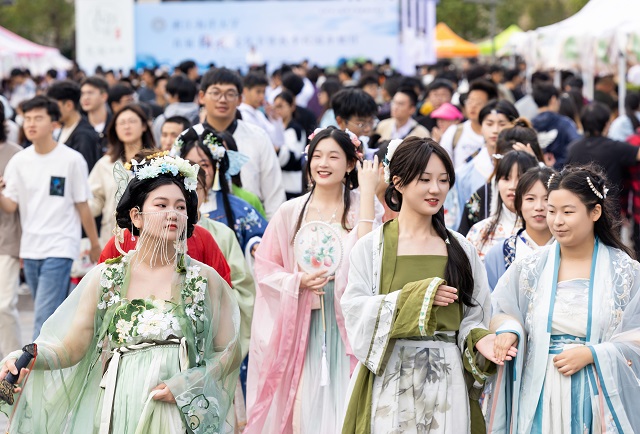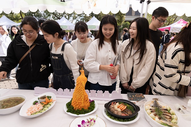 本次國風(fēng)文化節(jié)推出了十大主場活動和十大學(xué)院分會場活動。其中,“古韻煥美”國風(fēng)潮市集帶來了各類傳統(tǒng)美食、傳統(tǒng)手作和古風(fēng)飾品,富有濃濃傳統(tǒng)文化氣息的生活市集,為師生和市民帶來了獨(dú)特的游園體驗。秋風(fēng)起,佳景時,“曲韻流芳”戲曲面對面活動設(shè)置了折子戲表演、戲劇妝造展示、戲劇周邊互動、戲曲臉譜作品展等環(huán)節(jié),彰顯中國戲曲文化的深厚底蘊(yùn)!皾h韻華章”漢服文化展演秀選擇以漢服成人禮、歷朝漢服秀、留學(xué)生漢服交流、旗袍走秀等活動內(nèi)容,將歷朝服飾之美融入當(dāng)下校園生活,增強(qiáng)師生華夏民族文化自信!昂m崅鞒小狈沁z體驗項目則邀請漁民號子、舟山船模、海洋剪紙、漁繩結(jié)、海洋刺繡、海洋布藝等眾多非遺傳承人進(jìn)校,開展非遺項目展覽體驗活動,弘揚(yáng)舟山海洋文化的獨(dú)特魅力。師生和市民紛紛表示,浙江海洋大學(xué)國風(fēng)文化節(jié)是繼校園櫻花節(jié)后最盛大的活動,開放的姿態(tài)是吸引觀眾的最大亮點。