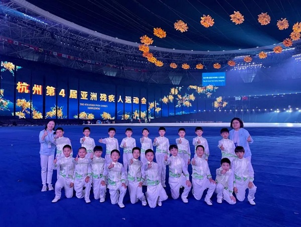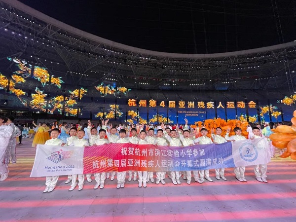 “這金桂的芬芳環(huán)繞你,是你陪我向前闖不放棄;這金桂的輝煌屬于你,是愛給我力量和勇氣……”在杭州亞殘運(yùn)會(huì)開幕式上的第三篇章《夢(mèng)閃耀》表演唱環(huán)節(jié),100多名參演孩子將美妙的歌聲、真摯的愛獻(xiàn)給全亞洲乃至全世界的人民。而這之中,有19位孩子是來自杭州市濱江實(shí)驗(yàn)小學(xué)。