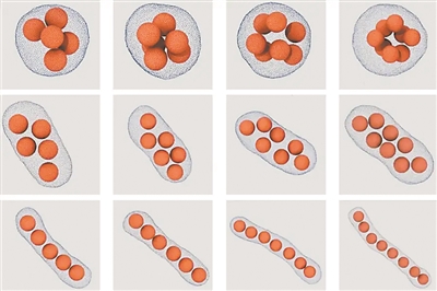 研究人員表示,對(duì)于多達(dá)9個(gè)球體,實(shí)驗(yàn)和模擬都證明了香腸形狀是最好的包裝形狀。當(dāng)超過(guò)9個(gè)球時(shí),膜會(huì)因球的壓力而變形。但是當(dāng)有56個(gè)到70個(gè)球時(shí),包裝效率又突然變得高效。這些發(fā)現(xiàn)可能在藥物輸送方面有所應(yīng)用,例如如何最有效地將硬質(zhì)抗生素分子裝在細(xì)胞膜內(nèi)。(記者 張佳欣)