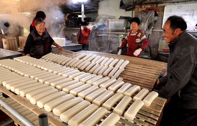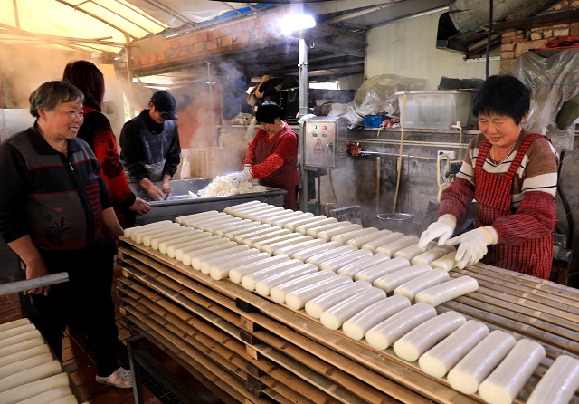 1月5日,在浙江省溫嶺市新河鎮(zhèn)肖家橋村,當(dāng)?shù)匕傩照谮s制熱氣騰騰的年糕,以喜迎新年的到來。溫嶺素有新年打年糕的習(xí)俗。年糕,寓意年年高,承載著百姓心中濃濃的鄉(xiāng)愁。(林紹禹 周學(xué)軍)