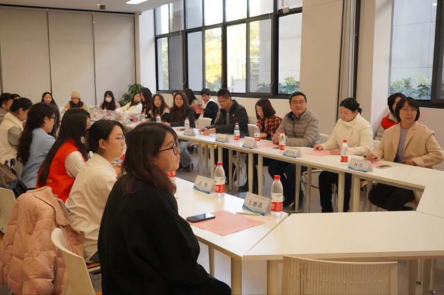 座談會(huì)上師生們圍坐在桌前交流,笑聲不斷。范振強(qiáng)是浙江工商大學(xué)外國(guó)語學(xué)院的一名教師,看著一批又一批志愿者回來,他心里感到非常欣慰!斑@些孩子們?cè)谶^去的十年里接待了上百批團(tuán)隊(duì),有些團(tuán)隊(duì)擅長(zhǎng)語言表達(dá),有些則只懂一些小語種。他們?cè)敢庥米约核鶎W(xué)的外語專業(yè)推動(dòng)國(guó)際文化傳播,讓更多人了解中國(guó)、了解浙江!
