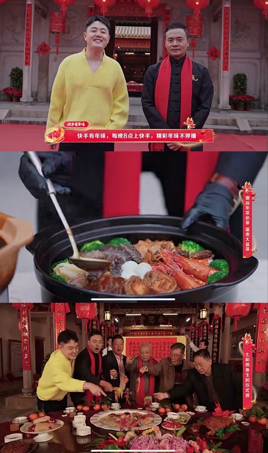 一年中最重要的一頓飯,莫過于年夜飯。它超越了美食的范疇,百家歡宴,都需要用心調(diào)和。從東北農(nóng)家院到樂陵魯味年,從極具民族風(fēng)的貴州侗寨長桌宴到最有潮汕味道的富貴團年飯,快手用戶跟著達(dá)人、名廚沉浸式感受各地年味的同時,在火紅的對聯(lián)、歡快的秧歌、熱鬧的集市,一聲聲祝福中,人們也感受到了美好生活的滋味。