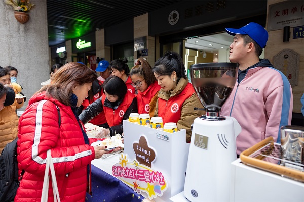 “把蛋糕帶走,把愛心留下。”在鹿城區(qū)蟬街,愛心社志愿者與國際志愿者、甌江小學(xué)少年愛心團通過孤獨癥知識宣傳單發(fā)放、公益咖啡制作、愛心蛋糕試吃與義賣等,助力孤獨癥青年群體被“看見”、被理解、被接納,走向更大的社會空間。孤獨癥青年參與蛋糕烘培、咖啡制作和現(xiàn)場售賣,以此幫助他們更好地與人交流、融入社會。此次活動旨在呼吁社會上更多人積極主動地接納他們、愛護他們,凝聚愛的力量幫助孤獨癥患者和家庭樹立信心,推進整個社會關(guān)注及支持孤獨癥患者的康復(fù)事業(yè)。