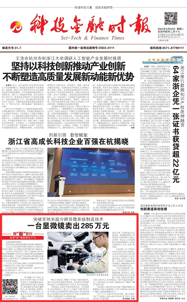 編者按》》》眼下,浙江正全力以赴“在以科技創(chuàng)新塑造發(fā)展新優(yōu)勢(shì)上走在前列”,科技金融時(shí)報(bào)全媒體推出“向‘新’躍升——發(fā)現(xiàn)‘浙’里新質(zhì)生產(chǎn)力”系列報(bào)道,深度挖掘一批在發(fā)展新質(zhì)生產(chǎn)力上敢打頭陣、勇當(dāng)先鋒、爭(zhēng)當(dāng)尖兵的典型。