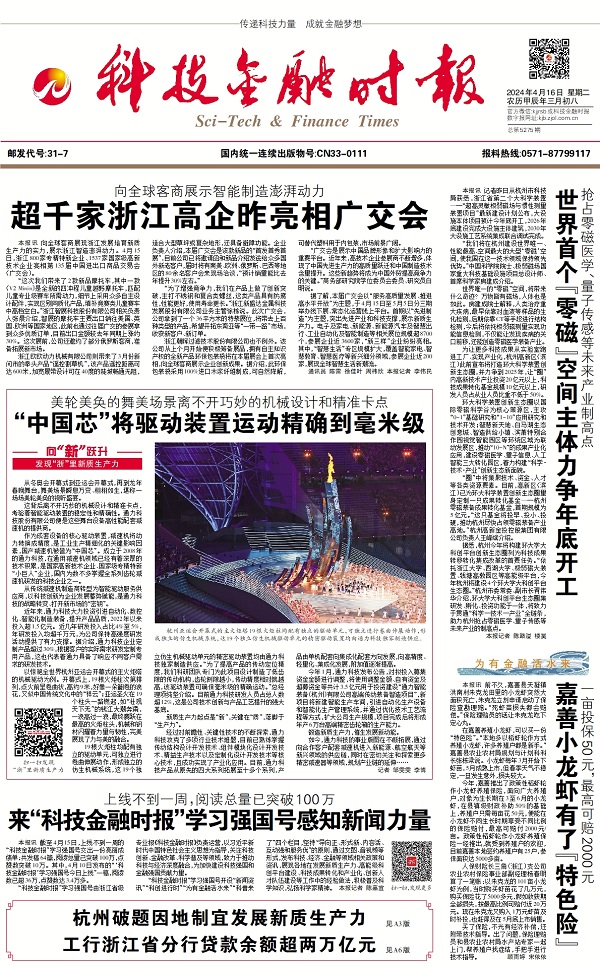 編者按》》》眼下,浙江正全力以赴“在以科技創(chuàng)新塑造發(fā)展新優(yōu)勢(shì)上走在前列”,科技金融時(shí)報(bào)全媒體推出“向‘新’躍升——發(fā)現(xiàn)‘浙’里新質(zhì)生產(chǎn)力”系列報(bào)道,深度挖掘一批在發(fā)展新質(zhì)生產(chǎn)力上敢打頭陣、勇當(dāng)先鋒、爭(zhēng)當(dāng)尖兵的典型。