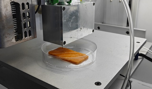 嘉善祥符蕩,未來(lái)食品實(shí)驗(yàn)室展廳,時(shí)隔一年,人造大黃魚肉終于迎來(lái)一個(gè)小伙伴——人造三文魚肉。