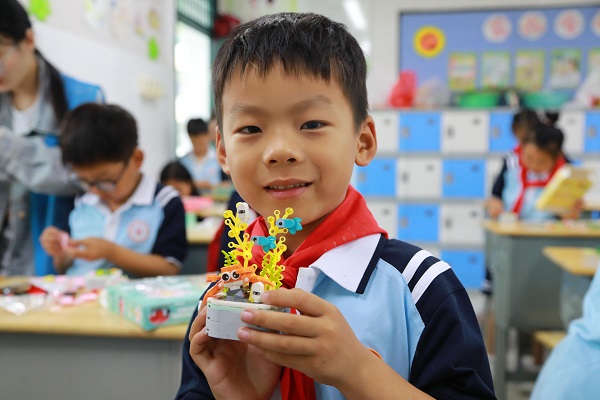 小小的積木課堂,拼出大大的奇妙世界。在科普講師蔣宇凡的指導(dǎo)下,孩子們默契合作,一朵朵惟妙惟肖的積木花朵在孩子們的指尖綻放。積木搭建讓學(xué)生的想象力飛了起來,讓好奇心滿了起來,讓雙手動了起來。