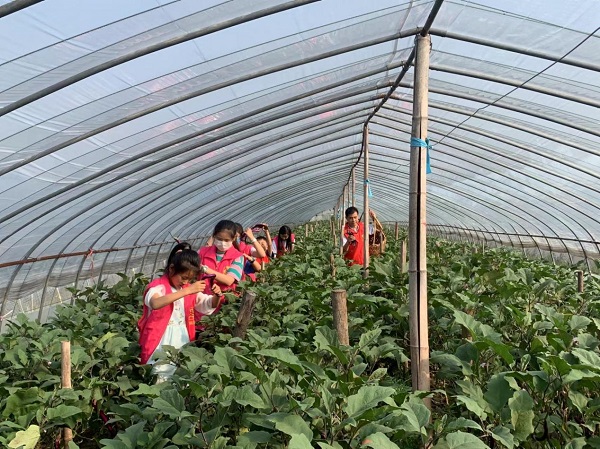 在幫扶戶的蔬菜大棚內(nèi),身穿紅馬甲的小朋友們,在了解了大棚茄子的基本知識(shí)及采收注意事項(xiàng)后,小心翼翼地摘下一個(gè)個(gè)成熟的茄子。小朋友們埋頭細(xì)心勞作,懂得了“誰知盤中餐,粒粒皆辛苦”的含義。