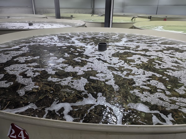 即使是夏天,一走進(jìn)養(yǎng)殖基地,也不由讓人倒吸一口冷氣。在現(xiàn)場,記者注意到車間內(nèi)的水質(zhì)在線監(jiān)測系統(tǒng),包括溶氧、水溫、pH值、鹽度等關(guān)鍵指標(biāo)實(shí)時顯示著,其中,水溫一欄顯示的溫度在3.9°C到4.1°C之間。“帝王蟹智能工廠化暫養(yǎng)技術(shù)在舟山市‘揭榜掛帥’科技攻關(guān)項(xiàng)目支持下,開展了帝王蟹工廠化循環(huán)水暫養(yǎng)環(huán)境快速精準(zhǔn)感知技術(shù)研究和智能化養(yǎng)殖系統(tǒng)集成,構(gòu)建了包括海水制冷系統(tǒng)、循環(huán)水處理系統(tǒng)、增氧系統(tǒng)、水質(zhì)在線監(jiān)測等帝王蟹智能工廠化循環(huán)水養(yǎng)殖系統(tǒng),高度仿生帝王蟹的原產(chǎn)地環(huán)境,打造帝王蟹最佳生存環(huán)境。”肖金星介紹,帝王蟹暫養(yǎng)期間,他們還做到了讓帝王蟹不減重。