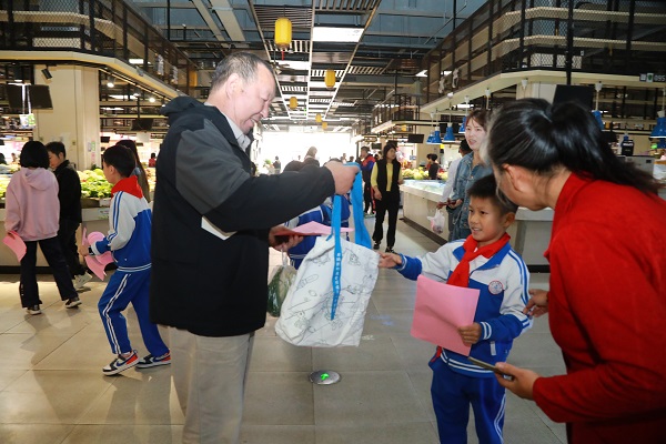 “叔叔,雖然一次性塑料制品極大地方便了我們的日常生活,但不規(guī)范的使用塑料制品卻會(huì)給我們的環(huán)境帶來(lái)很大的傷害。請(qǐng)減少使用一次性塑料制品,謝謝!彪S后,志愿者們分組深入南門菜市場(chǎng)及周邊商戶。他們手持宣傳單,化身宣傳大使,向商戶、過(guò)路群眾宣傳減塑行動(dòng)相關(guān)知識(shí),倡導(dǎo)綠色生活理念。他們用一個(gè)個(gè)鮮活的案例和生活中的小舉措,讓市民們深刻了解“減塑”理念,真切地認(rèn)識(shí)到“減塑”的意義,激發(fā)了市民對(duì)“減塑行動(dòng)”的高度熱情和強(qiáng)烈責(zé)任感;顒(dòng)共發(fā)放倡議書300余份,環(huán)保袋100余只。