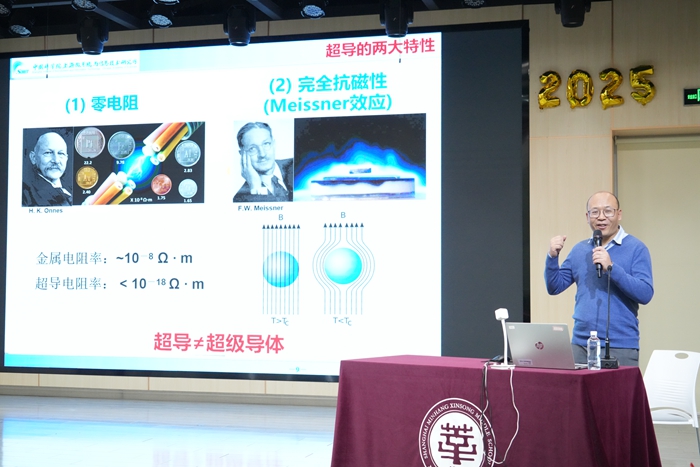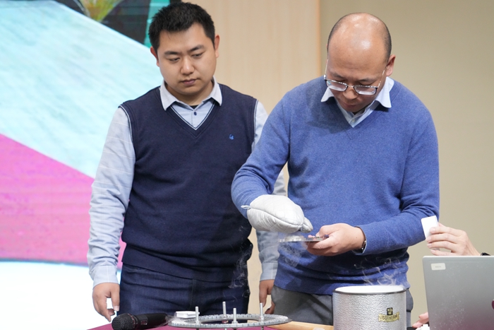 從溫度的概念入手,彭煒介紹了華氏溫標、攝氏溫標和熱力學溫標的發(fā)展歷史,并深入淺出地講解了絕對零度對物理學研究的意義。通過展示低溫技術對物質狀態(tài)和性能的影響,同學們對“低溫世界”有了全新的認識。隨后,彭煒通過形象的比喻和演示,讓同學們直觀感受到超導體的獨特魅力。