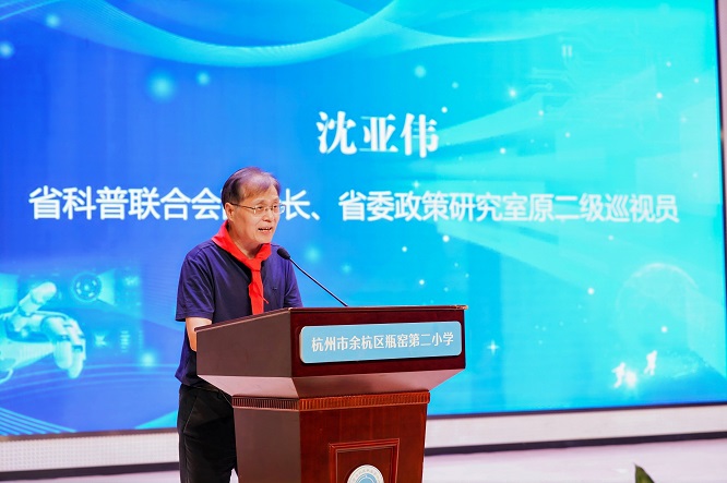 浙江省科普聯(lián)合會(huì)副會(huì)長(zhǎng)、省委政策研究室原二級(jí)巡視員沈亞偉,余杭區(qū)科學(xué)技術(shù)協(xié)會(huì)副主席張一祁,瓶窯第二小學(xué)書記、校長(zhǎng)沈國(guó)梁出席活動(dòng)。