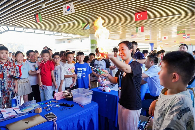 活動(dòng)現(xiàn)場(chǎng)還設(shè)置了“SciLuck科普長(zhǎng)桌”互動(dòng)展區(qū),來(lái)自科技企業(yè)、學(xué)校和科普基地的專家們帶來(lái)了機(jī)器人、科學(xué)實(shí)驗(yàn)、航天模型等前沿科技展示,學(xué)生們?cè)趧?dòng)手實(shí)踐中感受科技的魅力,激發(fā)探索熱情。