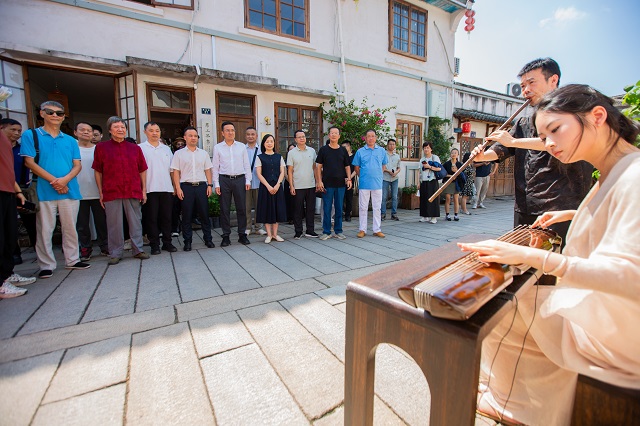 活動(dòng)現(xiàn)場,悠揚(yáng)古琴聲緩緩流淌,拉開文化盛宴的帷幕。隨后,中國當(dāng)代著名書法家葉根友現(xiàn)場揮毫潑墨,以筆墨丹青展現(xiàn)甌越書畫魅力,展露書畫藝術(shù)在基層沃土扎根生長之姿。