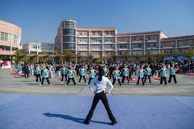街舞協(xié)會(huì)、校啦啦操隊(duì)、校武術(shù)隊(duì)輪番上場(chǎng),贏得全場(chǎng)師生陣陣掌聲。作為本次活動(dòng)的亮點(diǎn)環(huán)節(jié),“悅動(dòng)?青春”廣場(chǎng)舞環(huán)節(jié)將氛圍推向高潮。近千名師生以學(xué)院為單位列隊(duì),在專業(yè)教練的帶領(lǐng)下,隨著明快的節(jié)奏舒展肢體、盡情舞動(dòng)。啟明廣場(chǎng)上,躍動(dòng)的身影和歡快的旋律交織成一片活力海洋,成為釋放學(xué)業(yè)壓力、激揚(yáng)青春活力的生動(dòng)載體!霸瓉韽V場(chǎng)舞能這么潮!每一次伸展都是對(duì)疲憊的告別,每一次跳躍都是對(duì)壓力的宣戰(zhàn)!”人文與外語學(xué)院學(xué)生孟弋琳激動(dòng)地說。