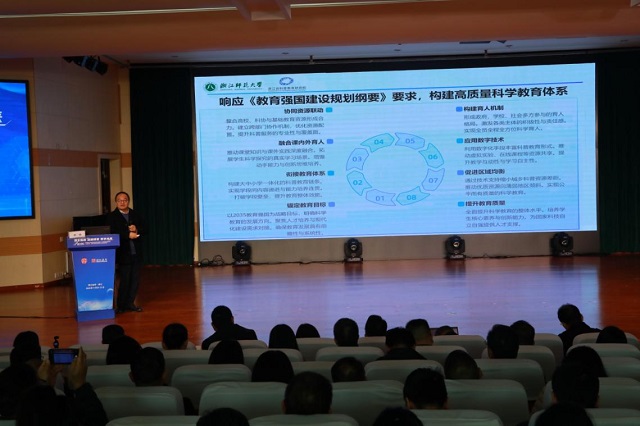 活動緊密圍繞時代前沿,將人工智能技術(shù)與科學(xué)教育的深度融合作為核心議題。多位權(quán)威專家?guī)砹烁咚降膶n}講座。浙江師范大學(xué)副校長李盛從宏觀戰(zhàn)略層面,深入闡釋了《教育強(qiáng)國指引下科技教育與人工智能融合的探索》;浙江省教研室副主任喻伯軍則聚焦實踐,提出了《建設(shè)科學(xué)教育實驗區(qū)、校的建議》,為一線工作提供了清晰的方法論指導(dǎo);科大訊飛AI技術(shù)應(yīng)用研究院副院長劉君分享了《人工智能技術(shù)最新進(jìn)展及在科學(xué)教育實踐案例》,生動展現(xiàn)了AI技術(shù)重塑科學(xué)課堂的廣闊前景。