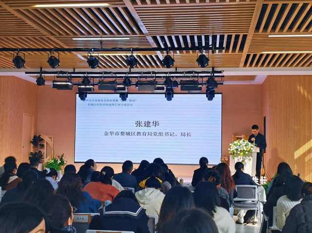 12月18日,在金華市婺城區(qū)紫金幼兒園內(nèi),金華市學(xué)前教育縣際研修暨“溫大-婺幼”校地合作階段性成果匯報(bào)交流活動(dòng)舉行。溫州大學(xué)教育學(xué)院副院長(zhǎng)林琛琛、學(xué)前教育研究中心主任李娟教授等專家,與金華市婺城區(qū)教育局黨組書記、局長(zhǎng)張建華等領(lǐng)導(dǎo),以及金華9個(gè)縣市區(qū)學(xué)前教育工作者齊聚,通過戶外游戲視導(dǎo)、示范課展示、教研沙龍等環(huán)節(jié),展現(xiàn)婺城學(xué)前教育從“普及普惠”到“優(yōu)質(zhì)均衡”的跨越,這也是溫州與金華教育協(xié)同共富的生動(dòng)實(shí)踐。