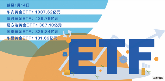 全市場首只千億元級黃金ETF出現(xiàn)。截至1月14日,華安易富黃金交易型開放式證券投資基金(以下簡稱“華安黃金ETF”)份額為101.62億份,規(guī)模首次突破千億元大關(guān),達(dá)1007.62億元。